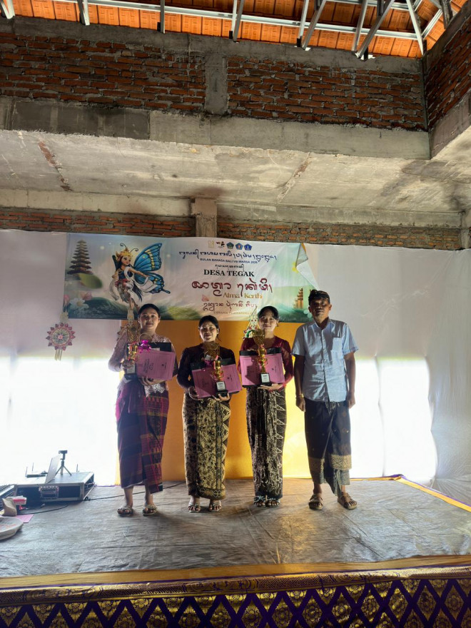 acara puniki kapungkah langsung olih Bapak Perbekel Desa Tegak, Dumogi malarapan pamargi Bulan Bahasa Bali sane ngambil bantang patitis Atma Kerthi "Udiana Purnaning Jiwa" puniki prasida ngawerdiang inggian kawentenan Basa, Aksara, miwah Sastra Bali Ngantos Kapungkur Wekas.
